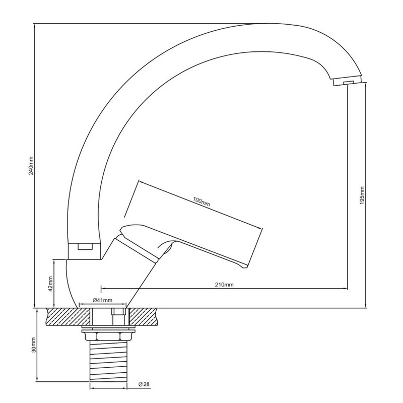 Однорычажный смеситель для кухни с корпусом из латуни и креплением на гайке. Присоединительный размер М28х1,5.