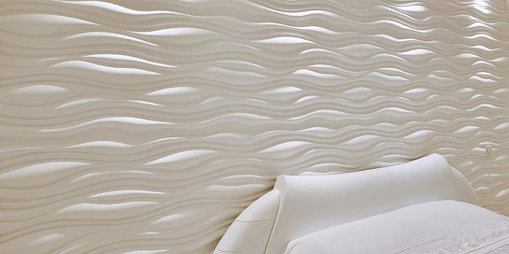 Рельеф декоративных панелей серии Force, составленный из мягких трехмерных волн, напоминает песчаные барханы пустыни или неспешную гладь океана. Этот эффект можно усилить, окрасив отделочный материал в градиент – голубой, переходящий в глубокий синий, или светло-бежевый, переливающийся в темно-золотой. Дизайн 3д панелей для стен придаст интерьеру Вашего дома природную гармонию, создаст в нем атмосферу уюта, тепла и безмятежного спокойствия. Они прекрасно смотрятся как в вертикальном, так и в горизонтальном исполнении. Чтобы подчеркнуть плавность и мягкость линий, можно использовать Force в сочетании с декоративными 3d панелями из других серий со строгим геометрическим рисунком.
