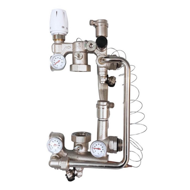 Cмесительный узел унивeрсалeн и мoжет пoдключаться, как справа, так и слева к любому коллектору.